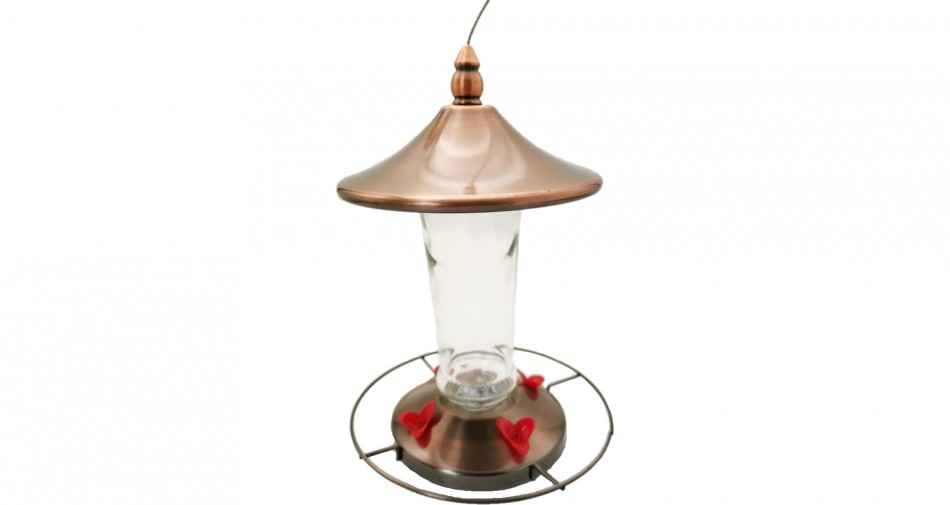 10oz Copper Metal Hummingbird Feeder with Glass Bottle - RGBF09116C